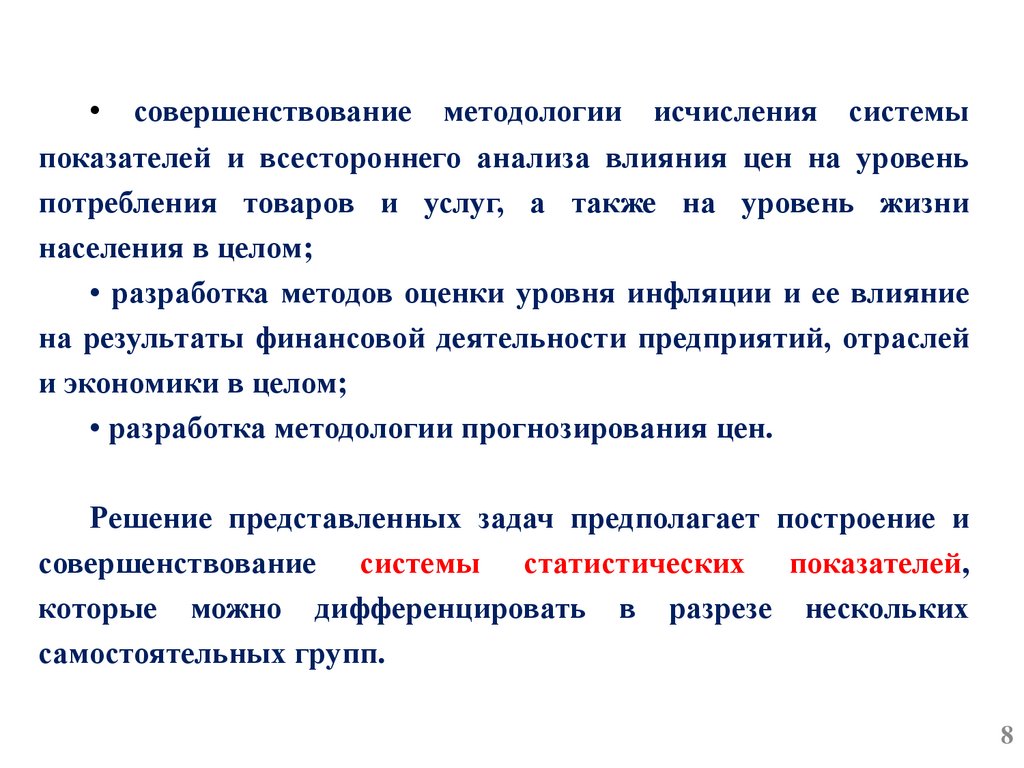 • совершенствование методологии исчисления системыпоказателей и всестороннего анализа влияния цен на уровень