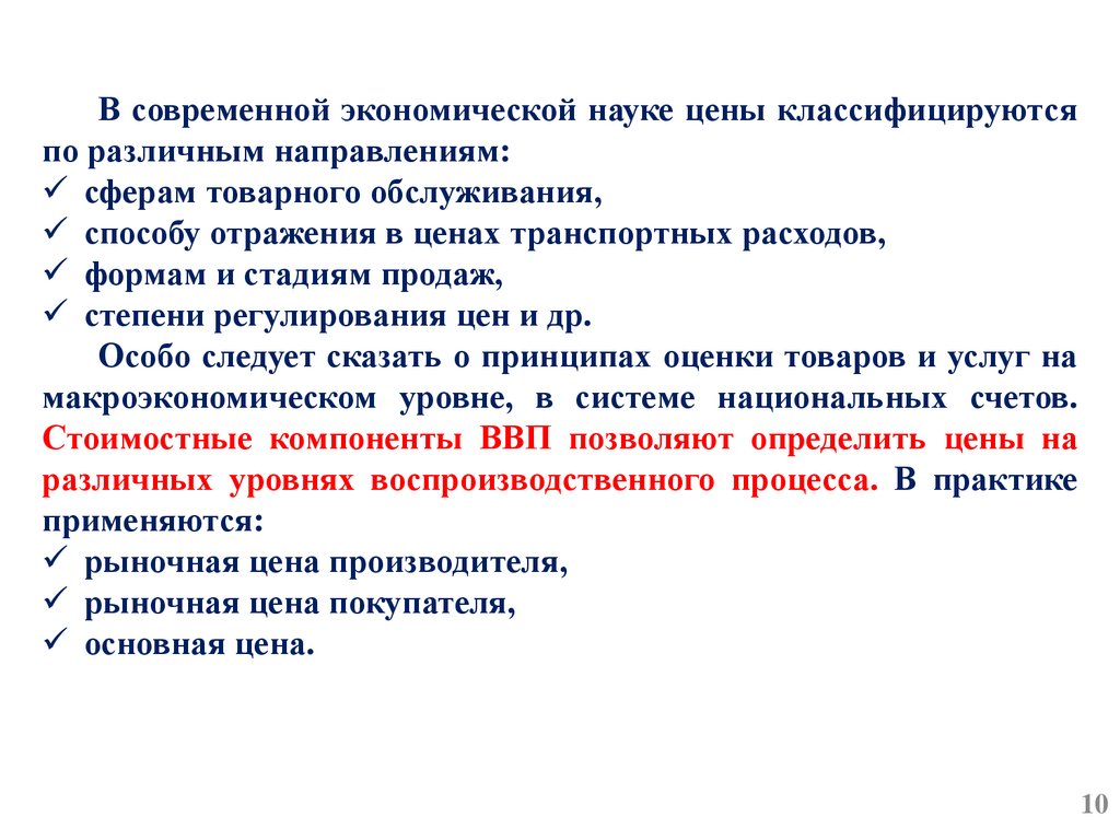 цен и ценообразования, в частности: