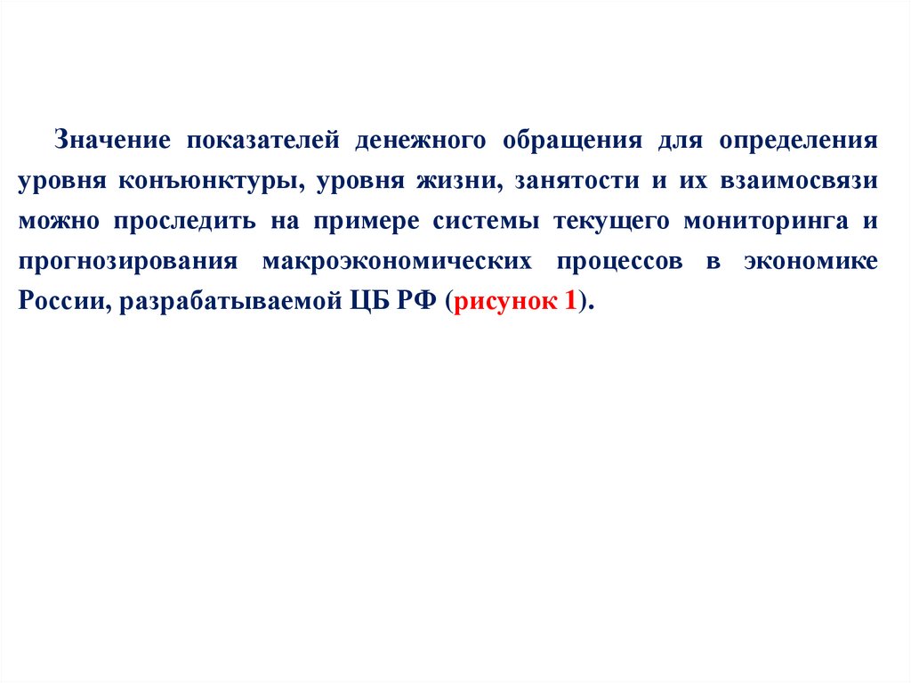 Значение показателей денежного обращения для определенияуровня конъюнктуры, уровня жизни, занятости и их взаимосвязи