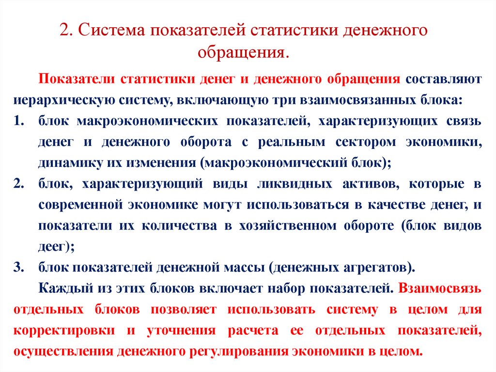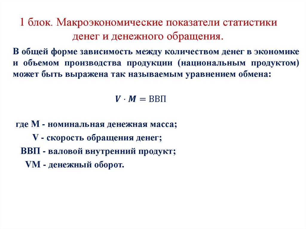 1 блок. Макроэкономические показатели статистикиденег и денежного обращения.