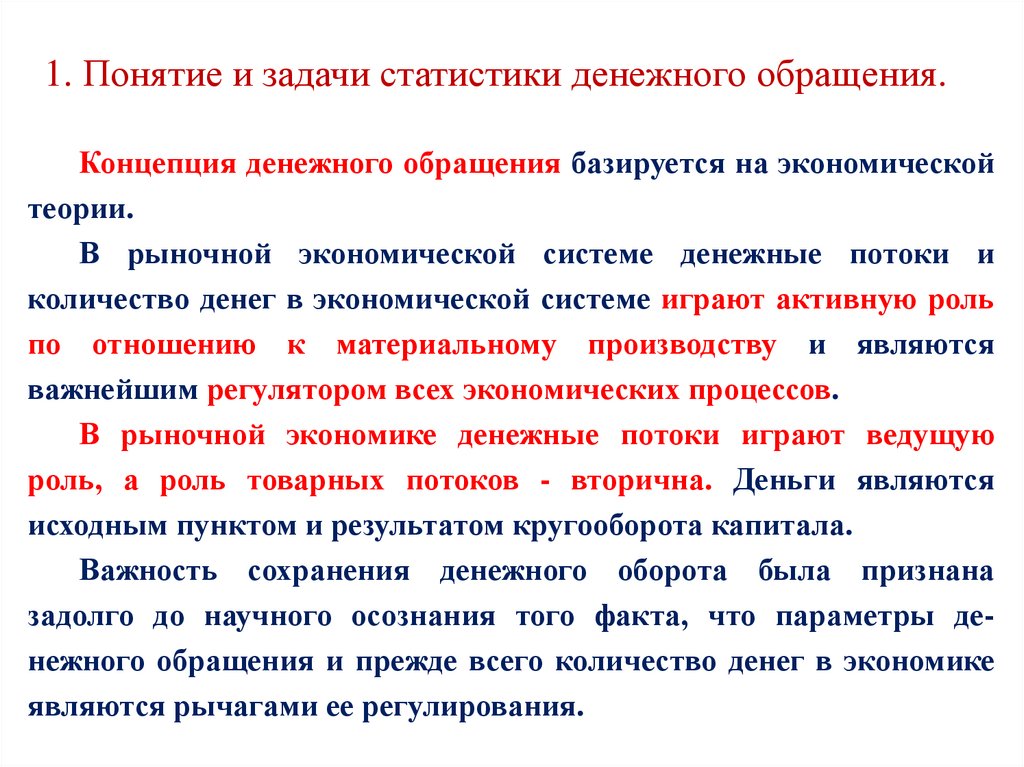 1. Понятие и задачи статистики денежного обращения.Концепция денежного обращения базируется на экономической