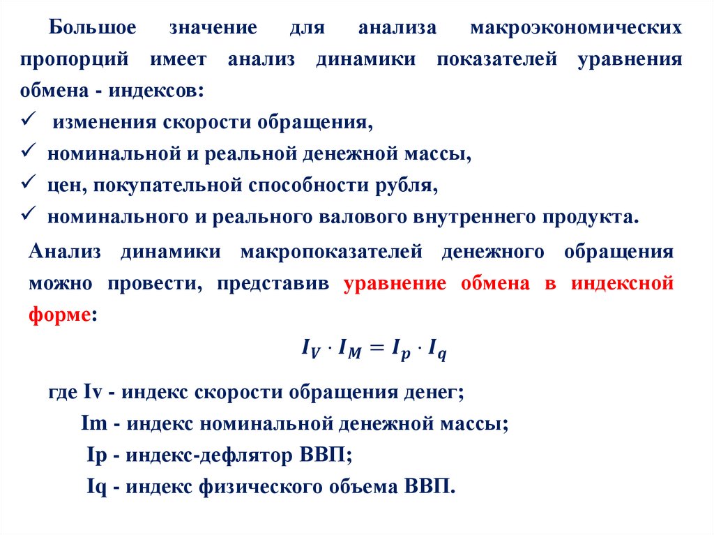 Макроэкономический блок включает показатели, позволяющиеоценить основные взаимосвязи денег и денежного обращения с