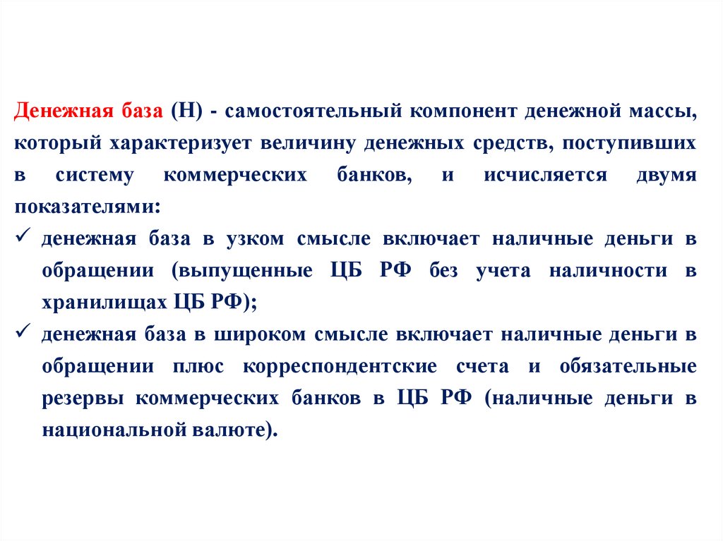 денежной массы и ее обращения являются данные ЦБ РФ,