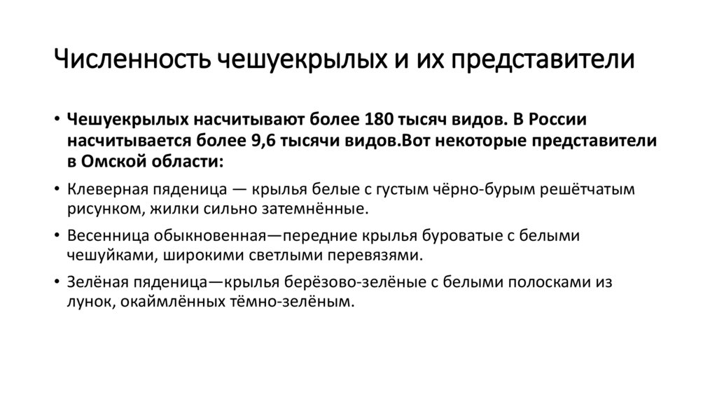 Численность чешуекрылых и их представители• Чешуекрылых насчитывают более 180 тысяч видов. В России