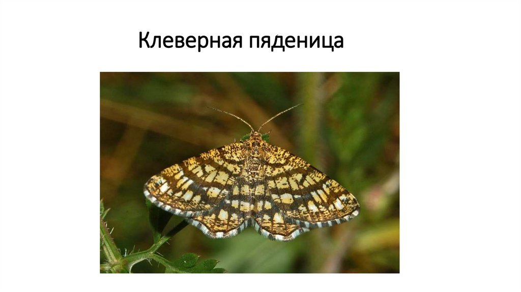 • Клеверная пяденица — крылья белые с густым чёрно-бурым решётчатым