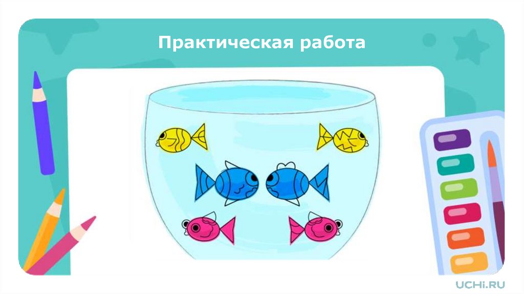 закрасьте рыбок.