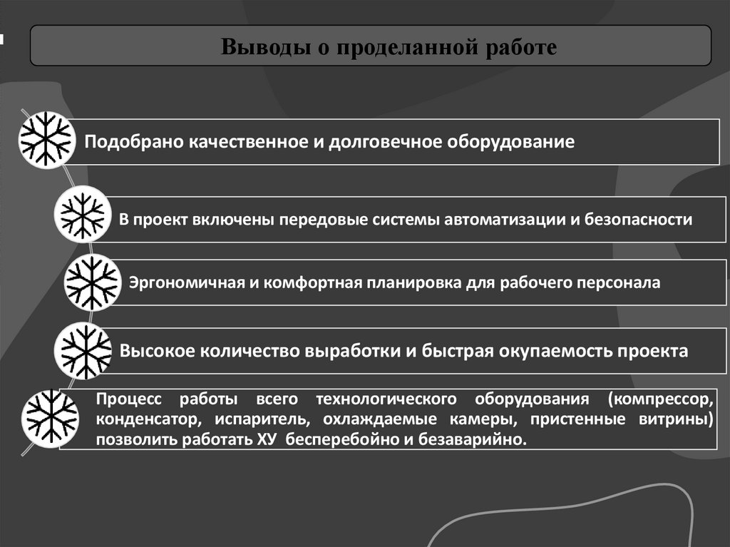 Выводы о проделанной работеПодобрано качественное и долговечное оборудование