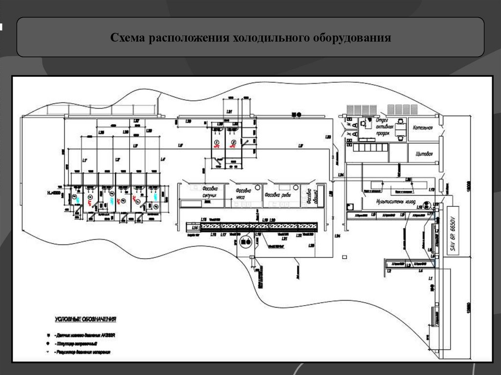 конденсатор, испаритель, охлаждаемые камеры, пристенные витрины)