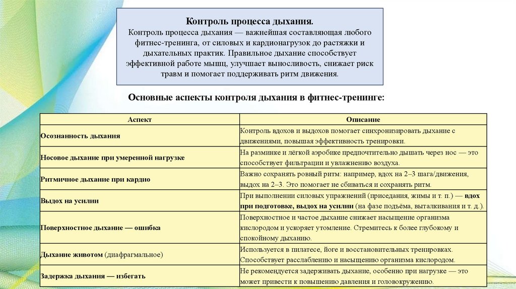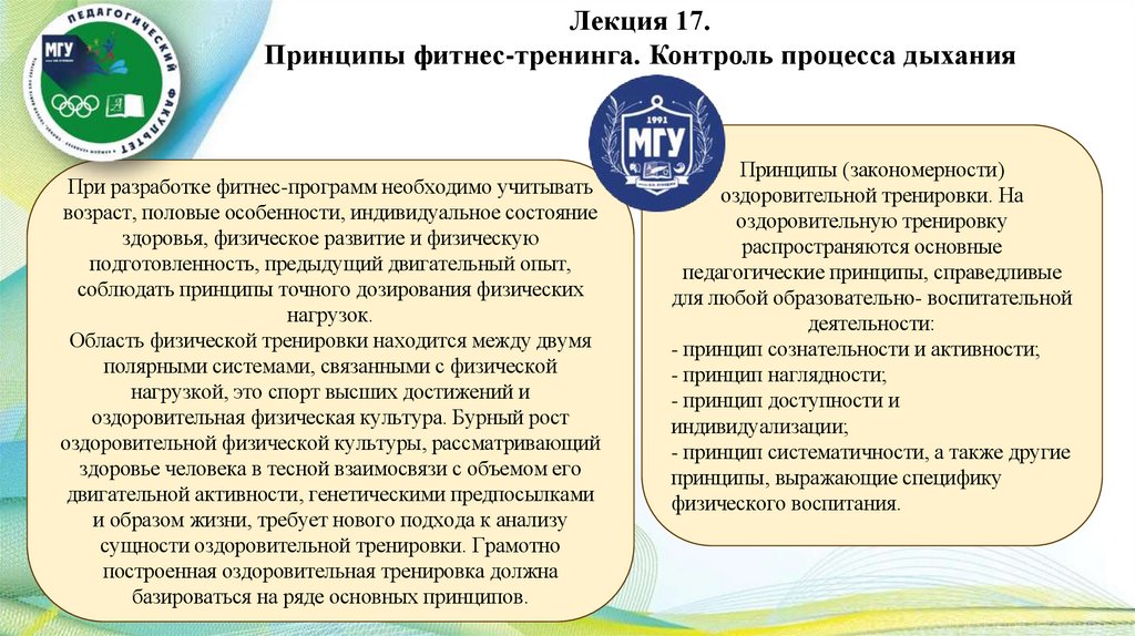 Лекция 17.Принципы фитнес-тренинга. Контроль процесса дыхания