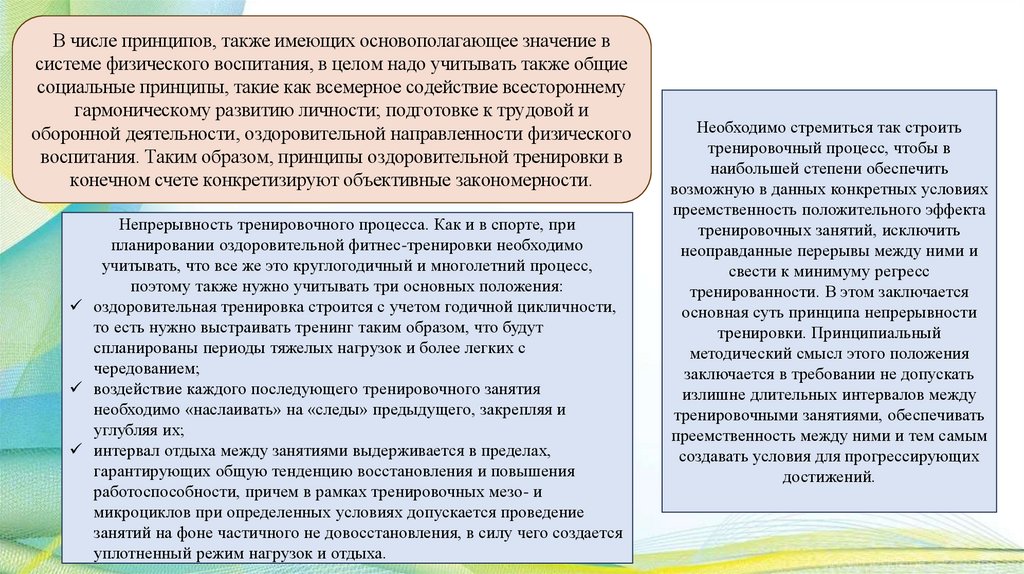 воспитания. Таким образом, принципы оздоровительной тренировки в