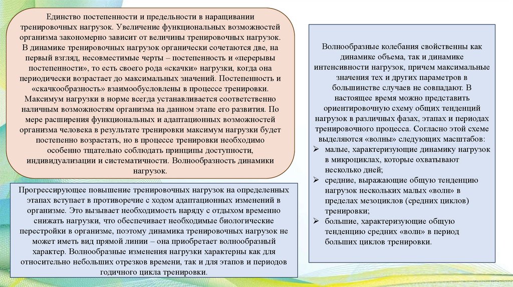 Тренировки чередуются по фазам: нагрузка – восстановление – адаптация.