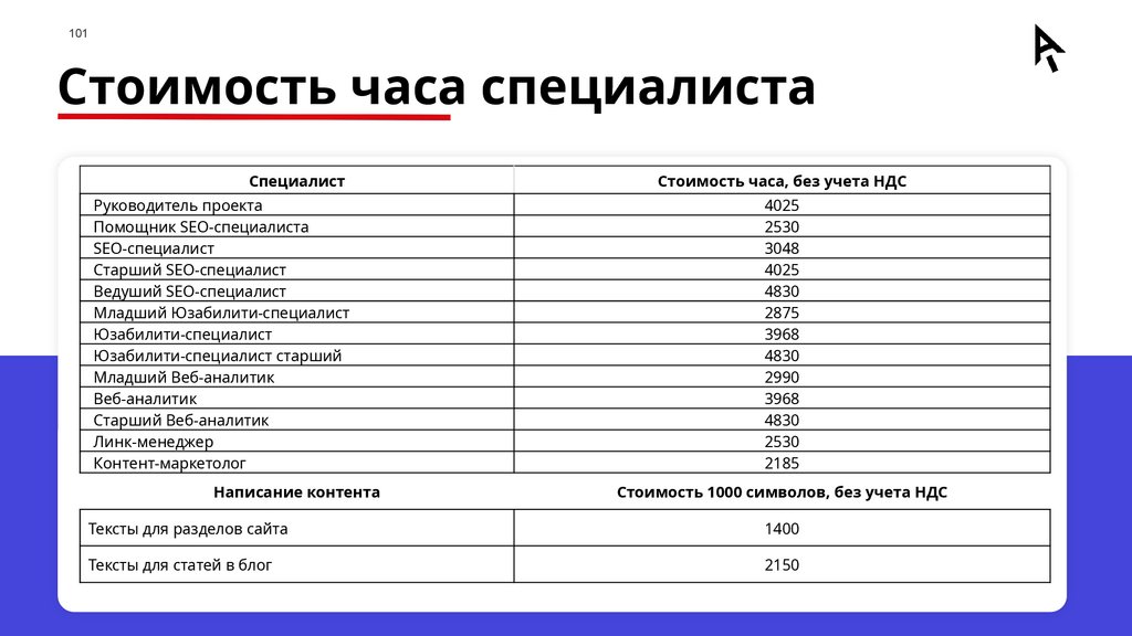 101Стоимость часа специалиста