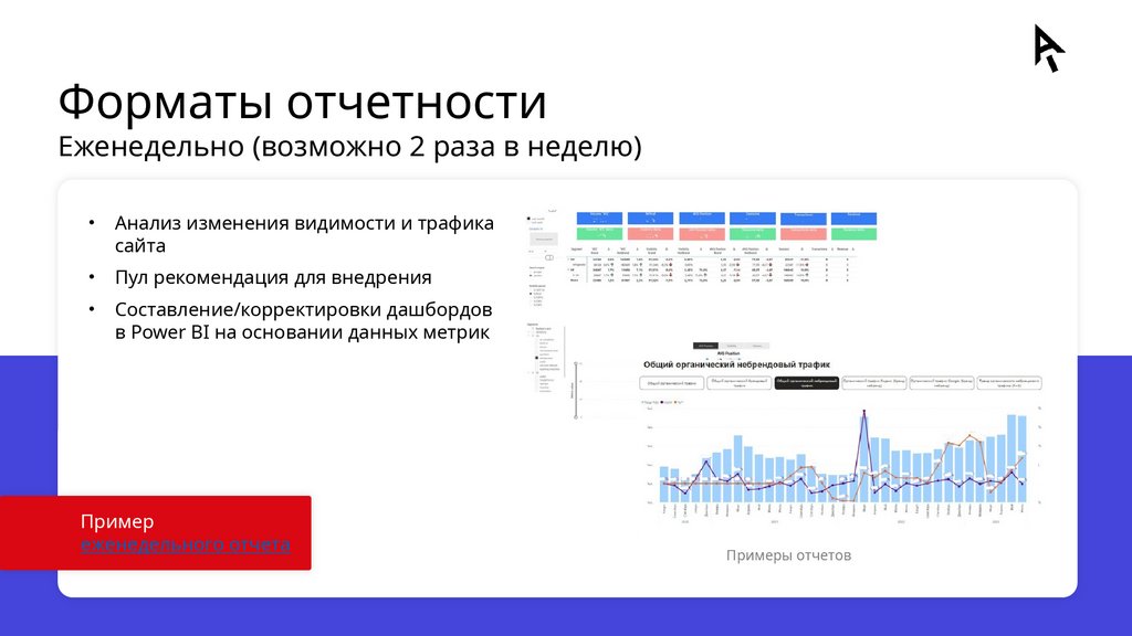 Форматы отчетностиЕженедельно (возможно 2 раза в неделю)