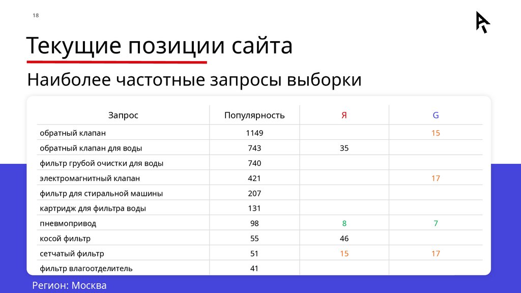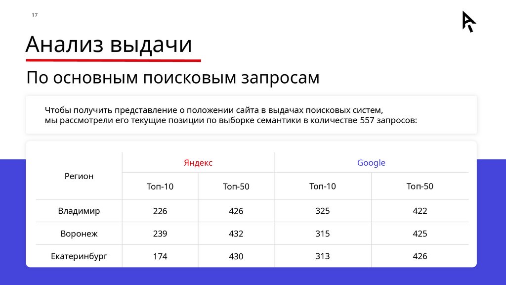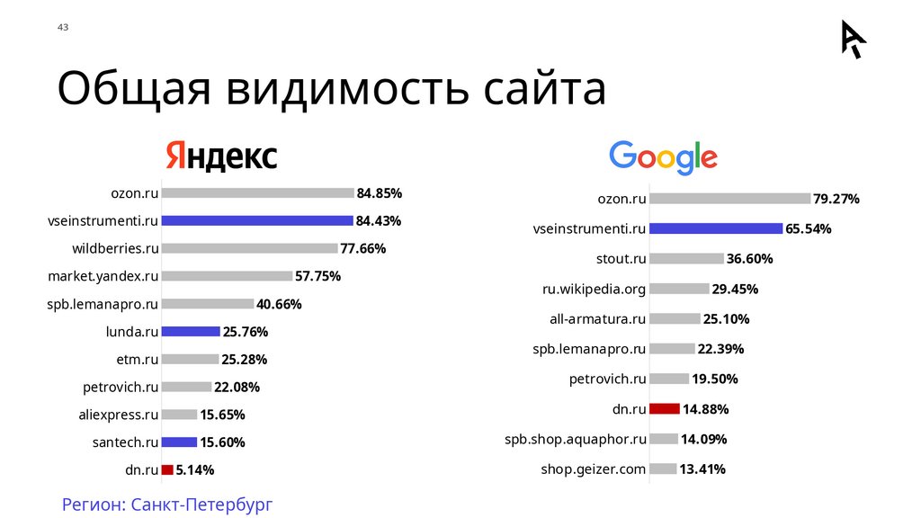 и 10 конкурентов по:
