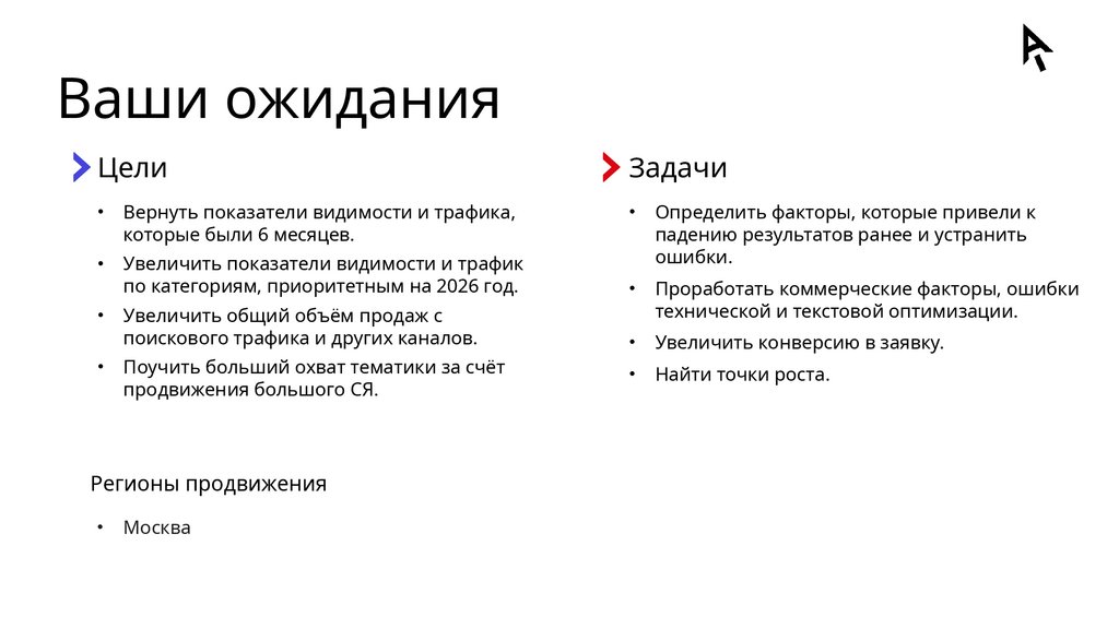 Ваши ожиданияЦели
