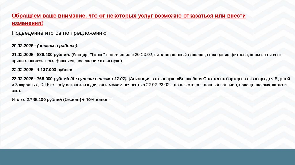 Обращаем ваше внимание, что от некоторых услуг возможно отказаться или внестиизменения!