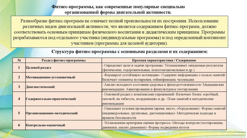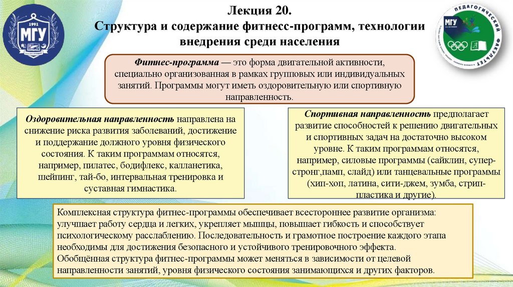 Лекция 20.Структура и содержание фитнесс-программ, технологии