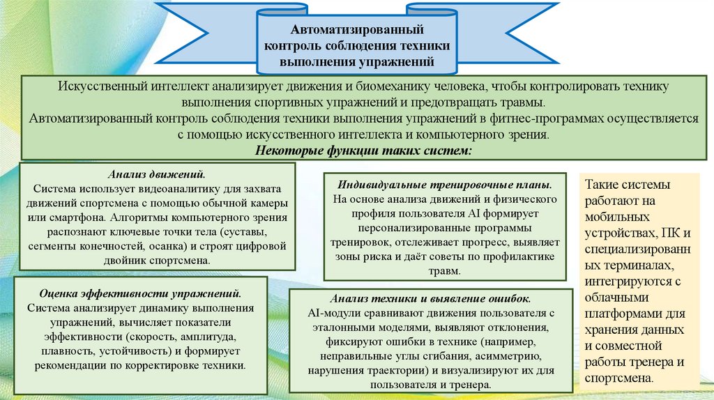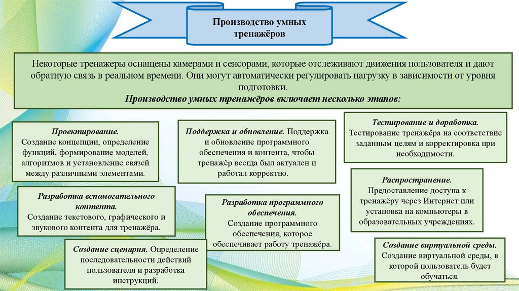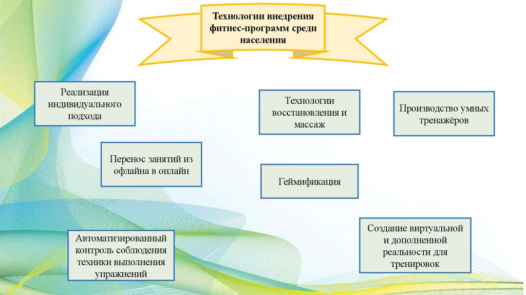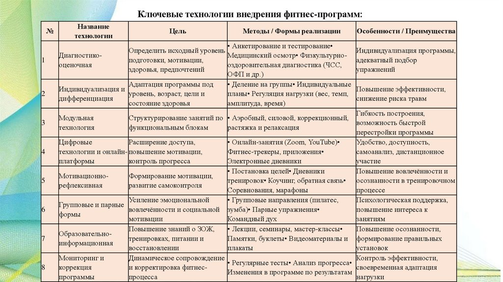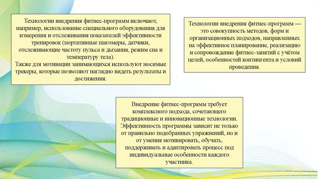 Технологии внедрения фитнес-программ включают,например, использование специального оборудования для