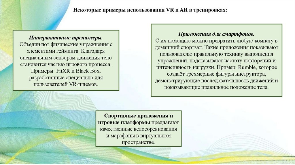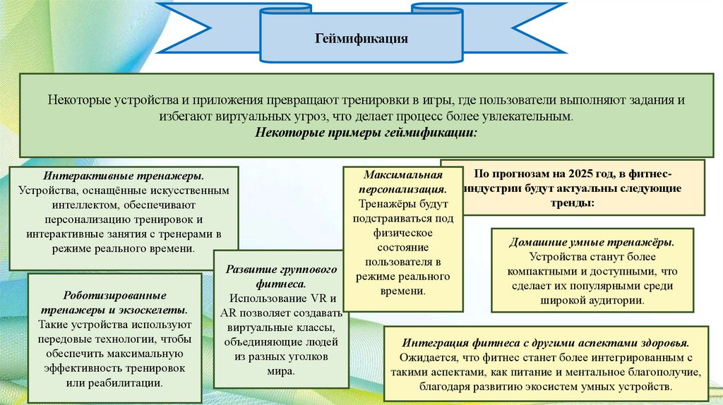ГеймификацияНекоторые устройства и приложения превращают тренировки в игры, где пользователи выполняют задания и