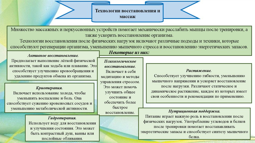 восстановления. Грамотное сочетание этих компонентов позволяет добиться