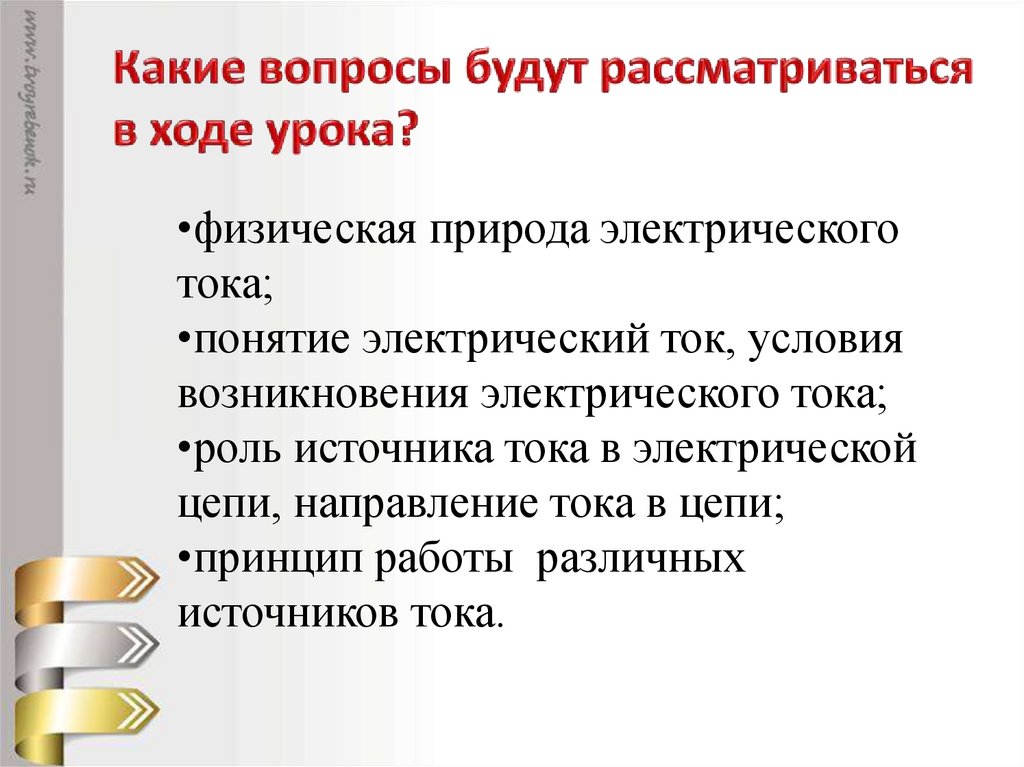 возникновения электрического тока;