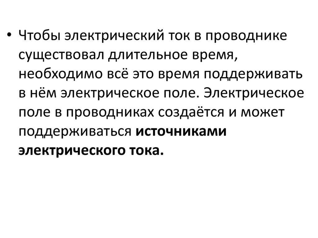 • Чтобы электрический ток в проводникесуществовал длительное время,