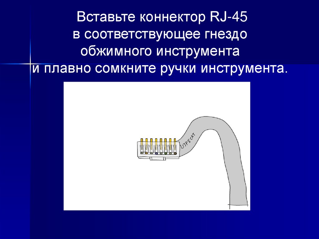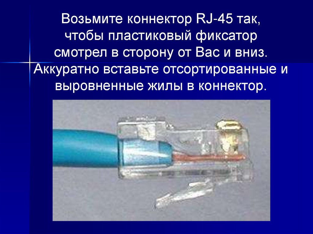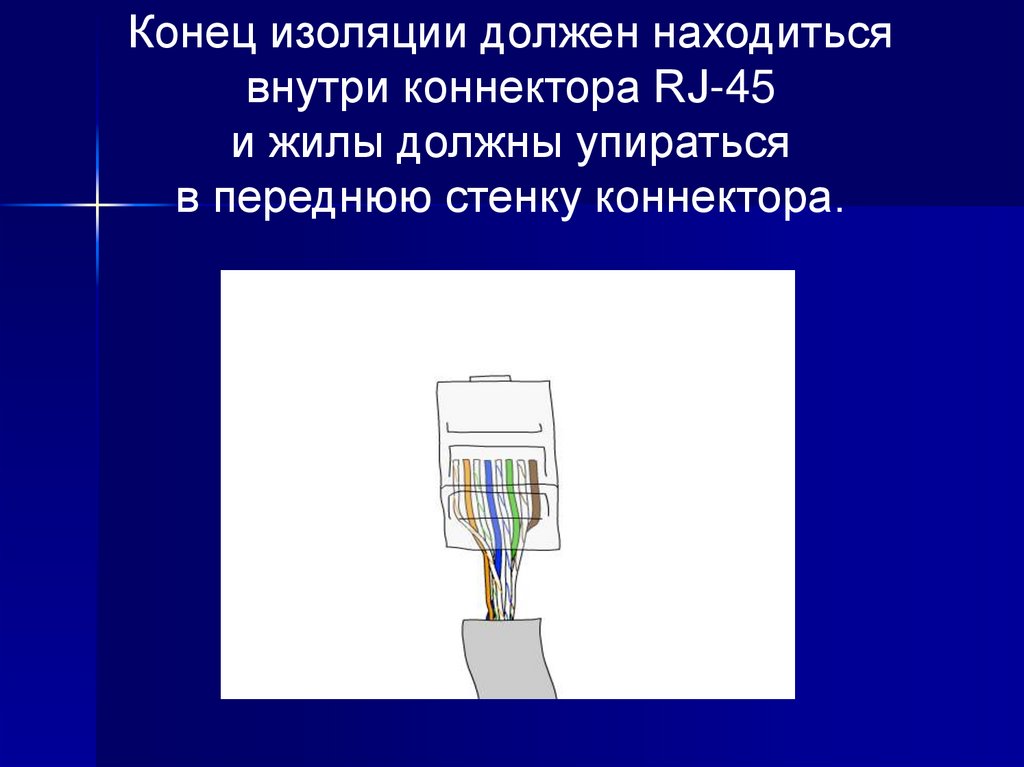 Конец изоляции должен находитьсявнутри коннектора RJ-45
