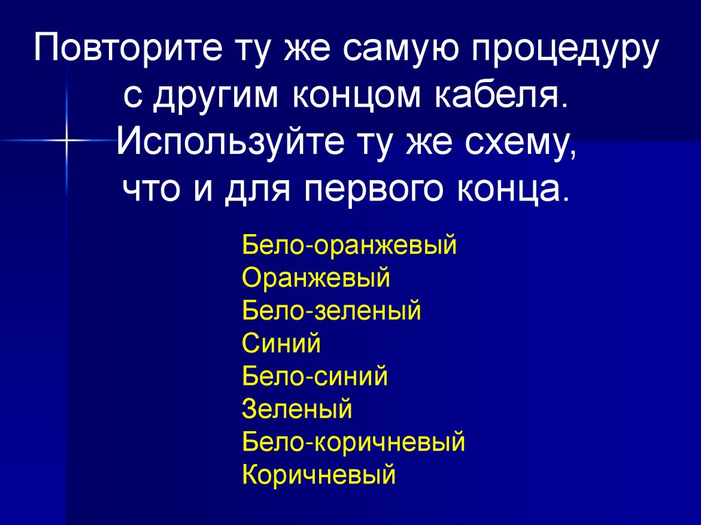Повторите ту же самую процедурус другим концом кабеля.