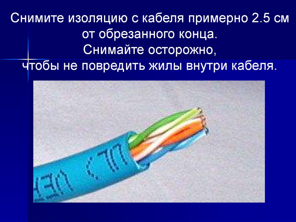Снимите изоляцию с кабеля примерно 2.5 смот обрезанного конца.