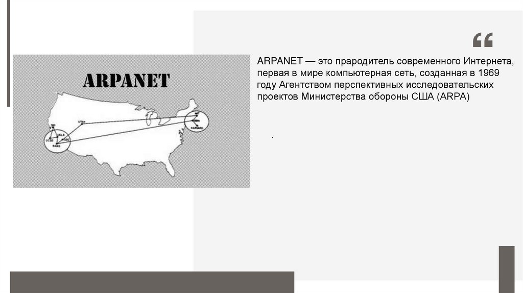 ARPANET — это прародитель современного Интернета,первая в мире компьютерная сеть, созданная в 1969