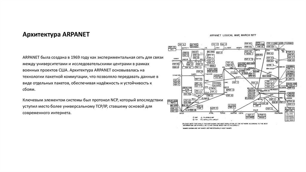 военных проектов США. Архитектура ARPANET основывалась на