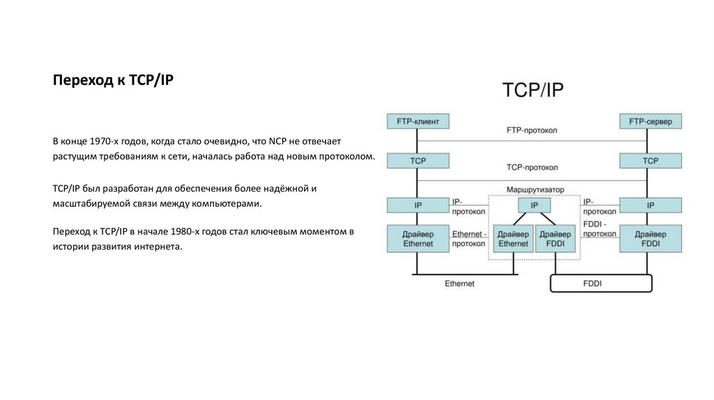 Переход к TCP/IP в начале 1980-х годов стал ключевым моментом в
