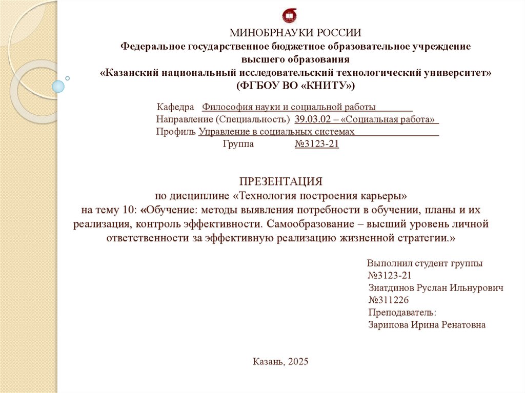 на тему 10: «Обучение: методы выявления потребности в обучении, планы и их