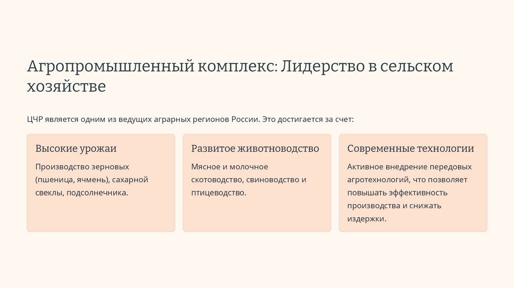 ЦЧР является одним из ведущих аграрных регионов России. Это достигается за счет: