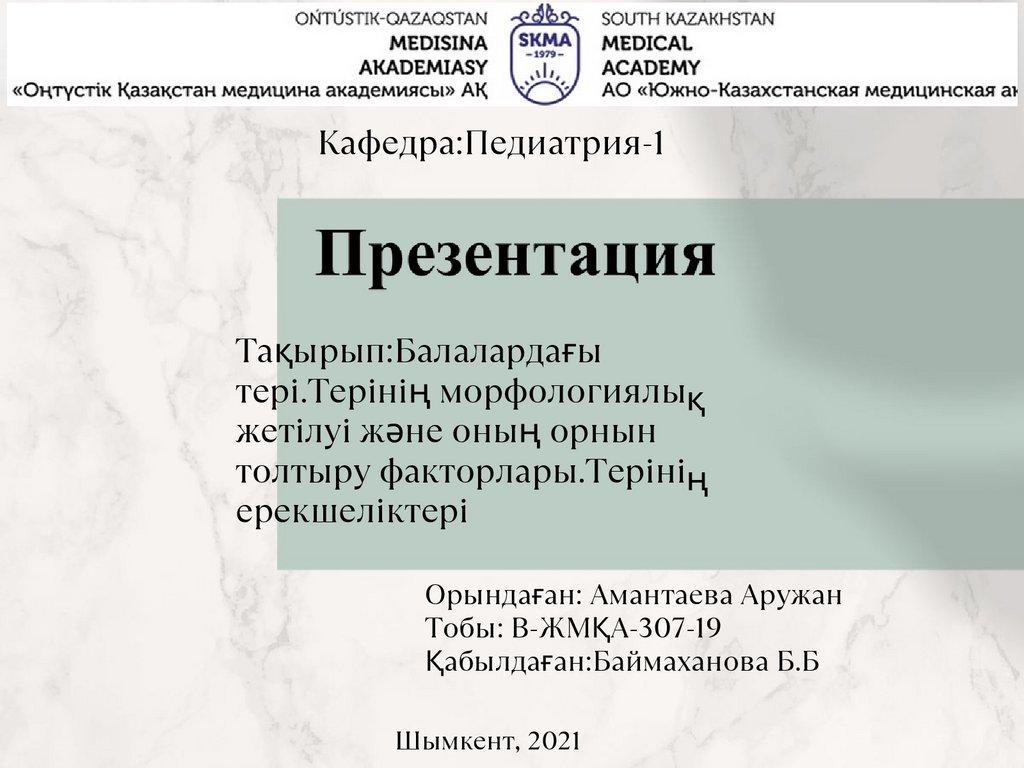 Кафедра:Педиатрия-1Тақырып:Балалардағы