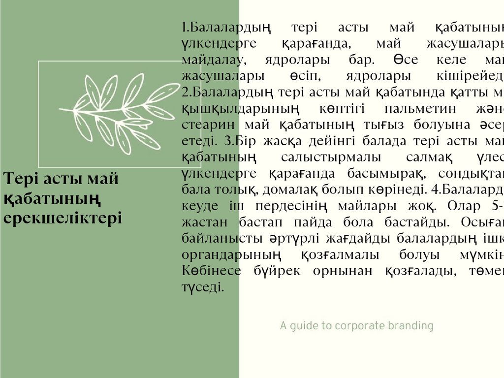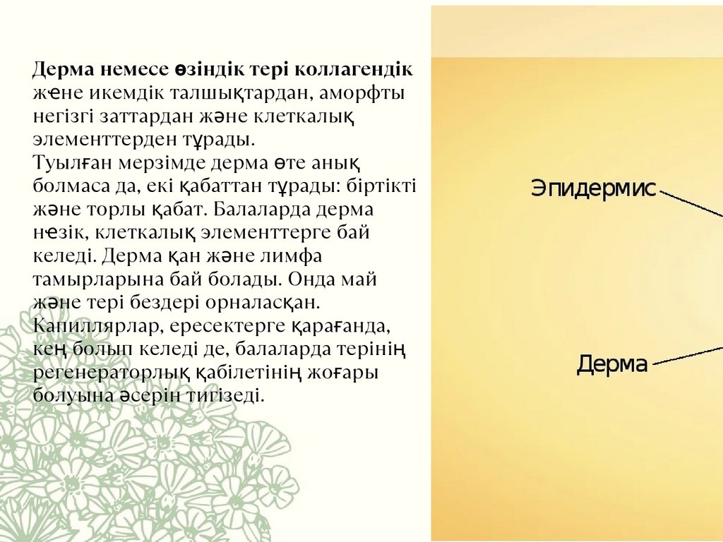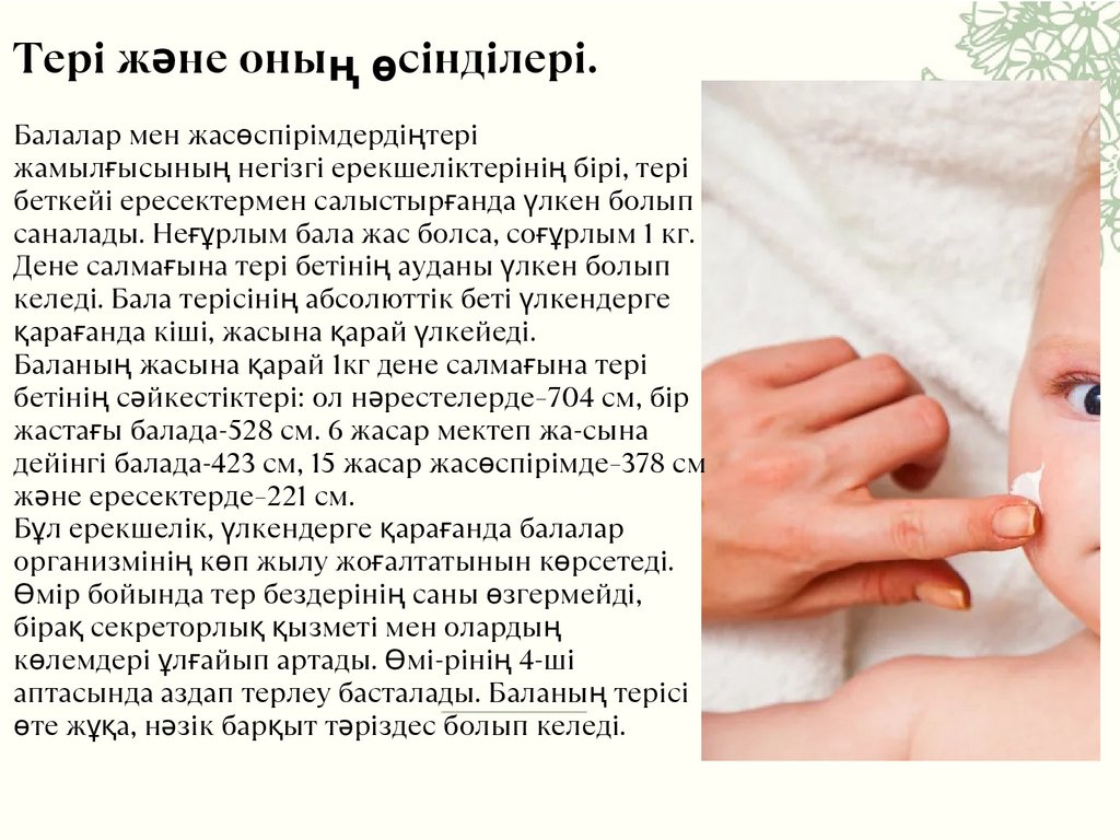 ерекшеліктері бар. Балаларда терісінің жалпы