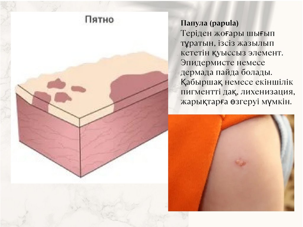 Папула (papula)Теріден жоғары шығып