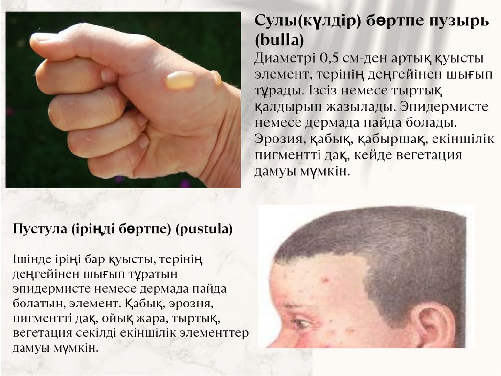 күлдіреуікше, күлдіреуік, пустула (қуысты бөртпе), папула