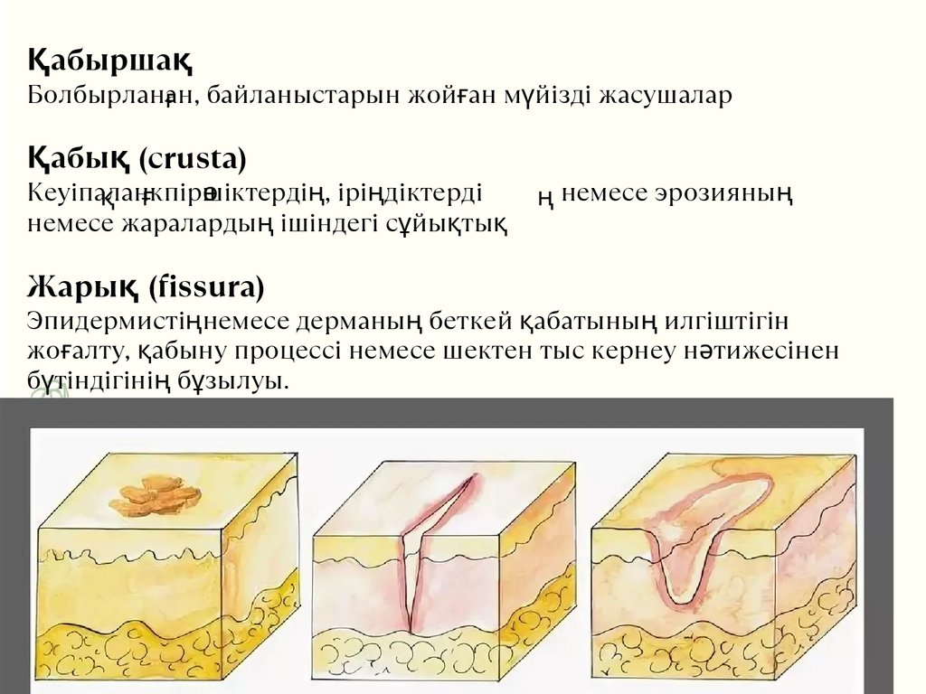(язва), қабыршақ, тыртық, атрофия, вегетация,