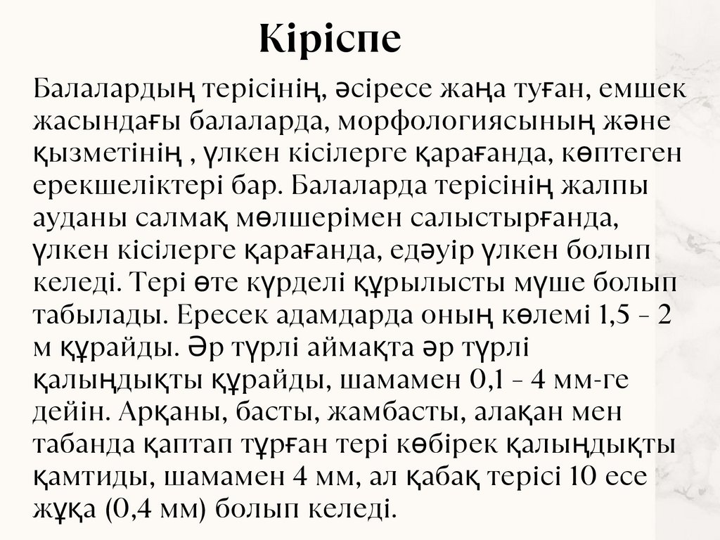 КіріспеБалалардың терісінің, әсіресе жаңа туған, емшек