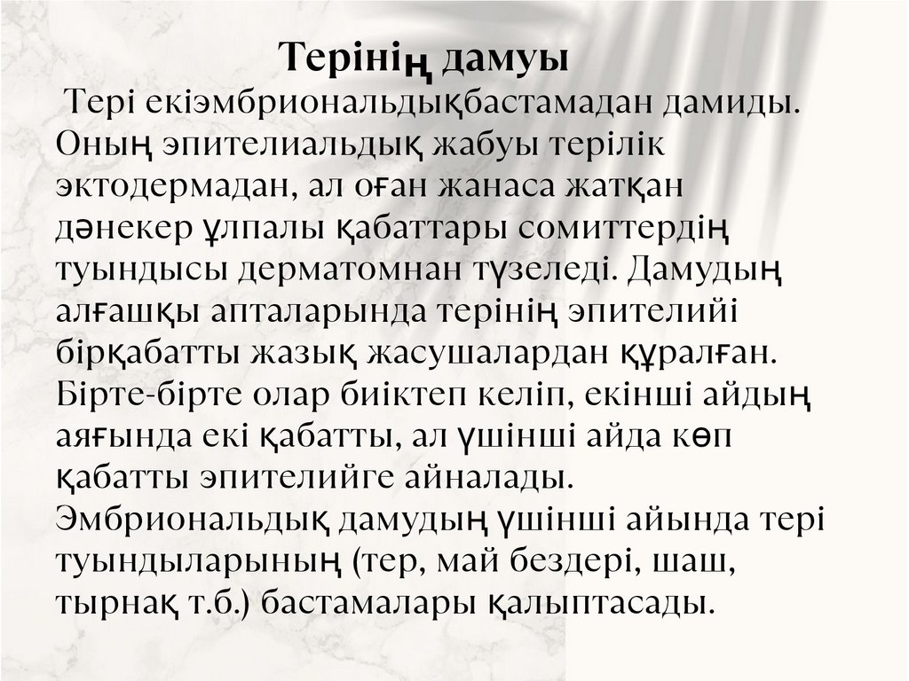 Терінің дамуыТері екіэмбриональдықбастамадан дамиды.