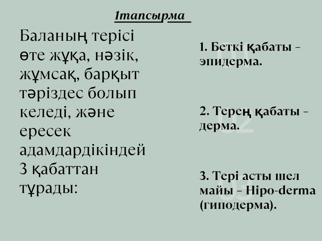 1тапсырмаБаланың терісі