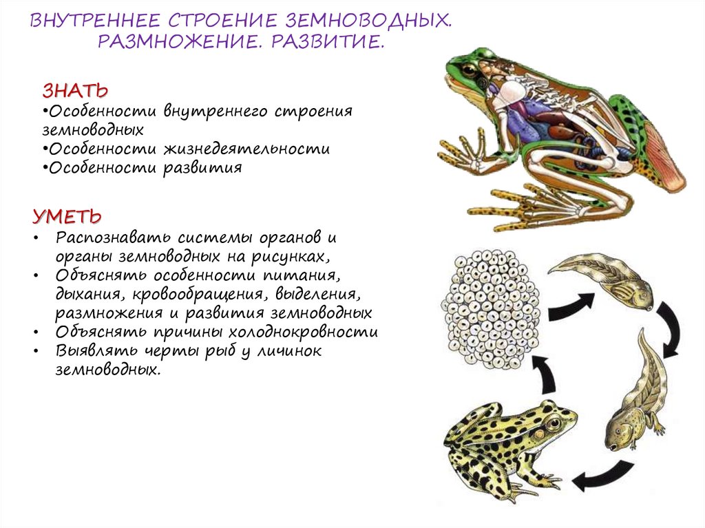 ВНУТРЕННЕЕ СТРОЕНИЕ ЗЕМНОВОДНЫХ.РАЗМНОЖЕНИЕ. РАЗВИТИЕ.