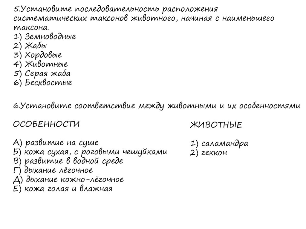 6.Установите соответствие между животными и их особенностями