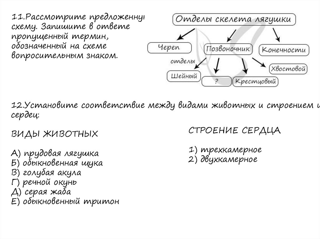 12.Установите соответствие между видами животных и строением и
