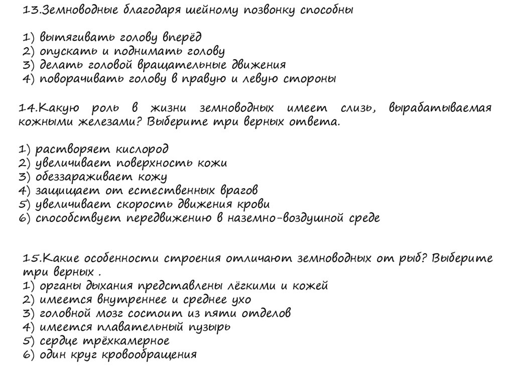 13.Земноводные благодаря шейному позвонку способны1) вытягивать голову вперёд