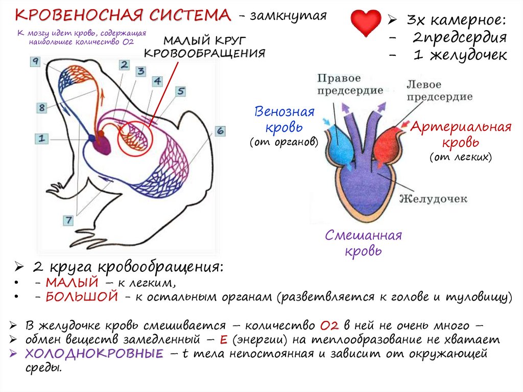 5) сердце трёхкамерное