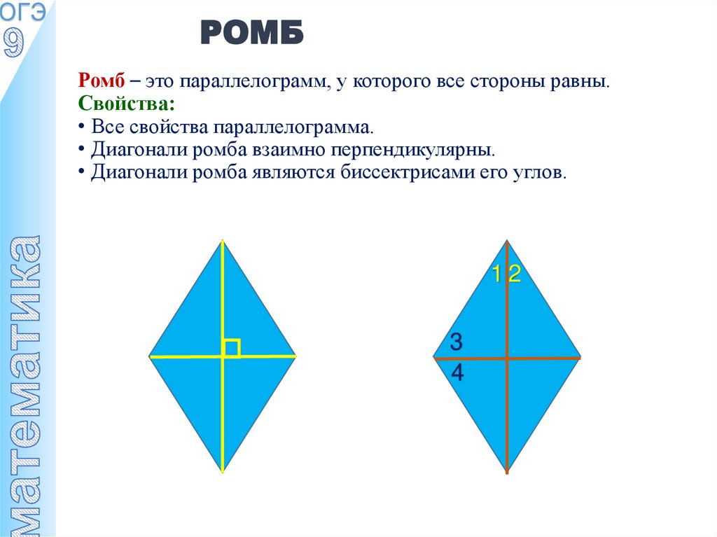 Ромб – это параллелограмм, у которого все стороны равны.