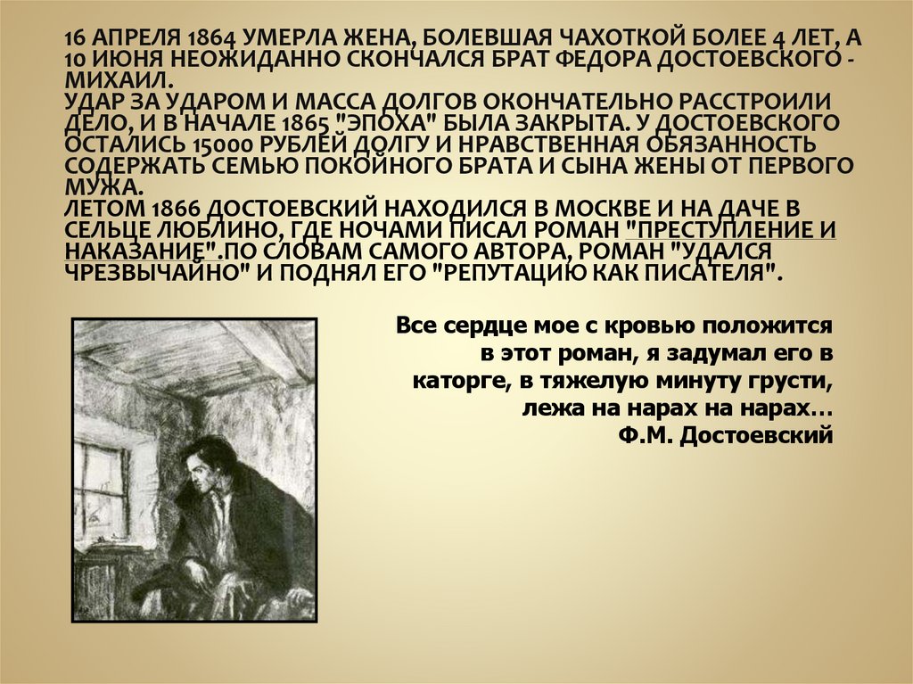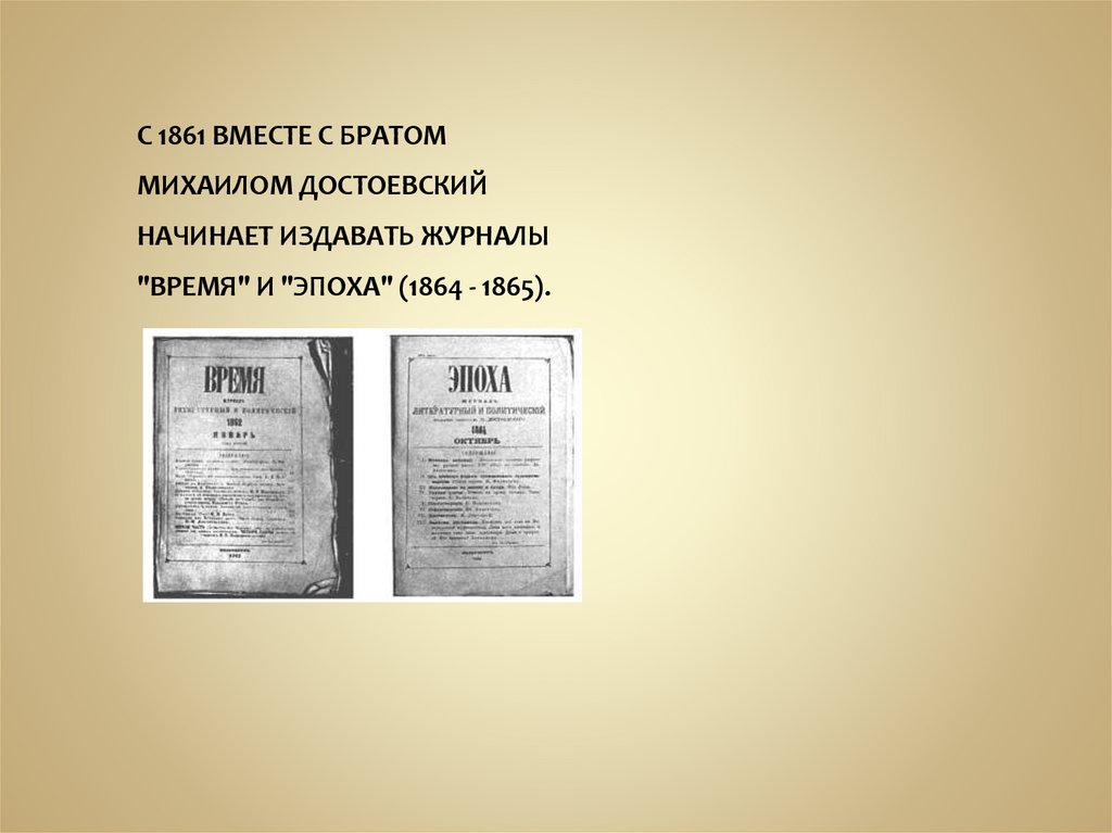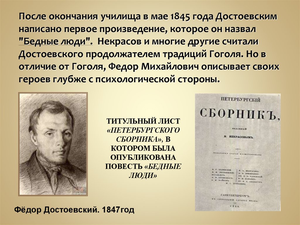 1845г – повесть «Бедные люди»1861г – «Записки из мёртвого дома»