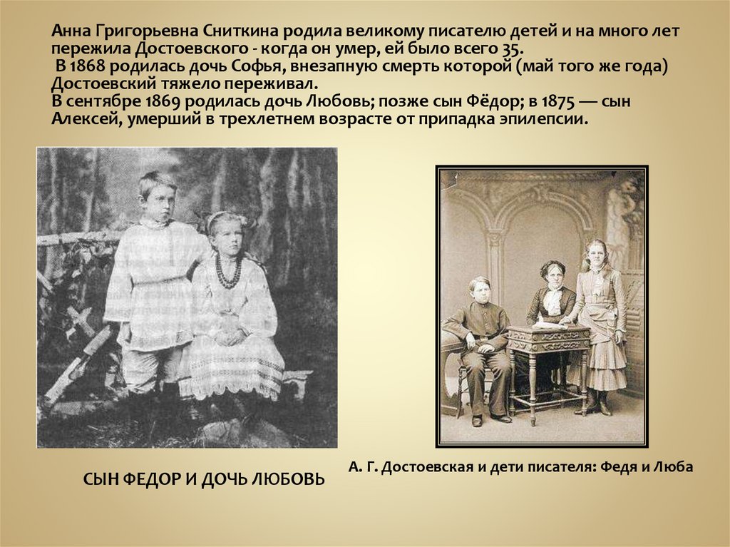 А. Г. Достоевская и дети писателя: Федя и Люба